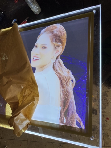 Sau tấm mica là nội dung hình ảnh .Đây chính là linh hồn của bức tranh . Bức tranh được chọn cần phải có độ phân giải cao từ 150 dpi trở nên và được in trên chất liệu đặc biệt dẫn sáng . Backlix phim thường được chúng tôi lựa chọn vì có độ dẫn sáng lên tới 70%.
