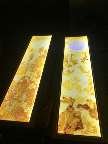 Phía sau tấm tranh là tấm mica dẫn sáng có độ dày 3,6mm . Toàn bộ tấm mica này được phủ 1 lớp phản quang dẫn sáng giúp cho ánh sáng có thể tỏa khắp mọi bề mặt tranh. Đây là yếu tố then chốt để tạo nên bức tranh đẹp .